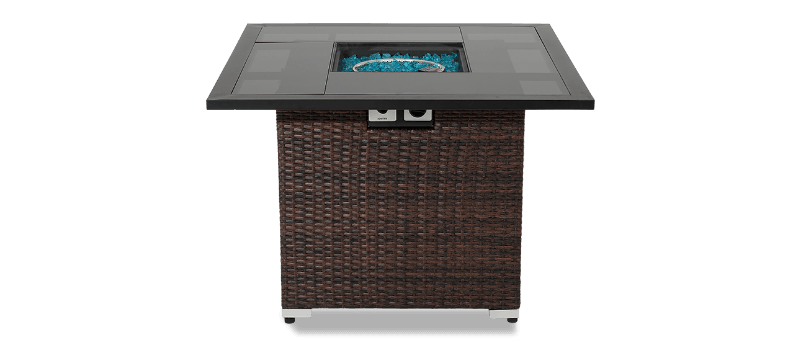 Wicker fire pit is definitely a highlight spot among numerous kinds of fire pit. Outdoor space is the most special area in home because it’s the only place connecting inside and nature. So in design, patio fire pits stresses out the naturalism more than others. this lovely square fire table creates quite an exciting silhouette.This square propane fire pit table is built from weatherproof steel frame that goes well in almost any garden design plan. Its weather-resistant wicker gives the whole set strength and durability. The fire pit’s burner system and fire glass create rich, inviting flames everyone will want to gather around.